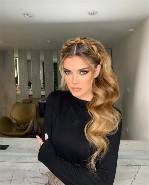 Take a small section of hair near the ear, braid it, and secure it around the head like a headband. Secure it in place. Braid hairstyles can easily create an elegant vibe. The rest of the hair can be left hanging naturally, you can also tie them into a high ponytail or style it any other way you like.