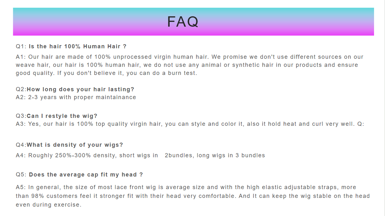 Top quality human virgin hair, full & durable